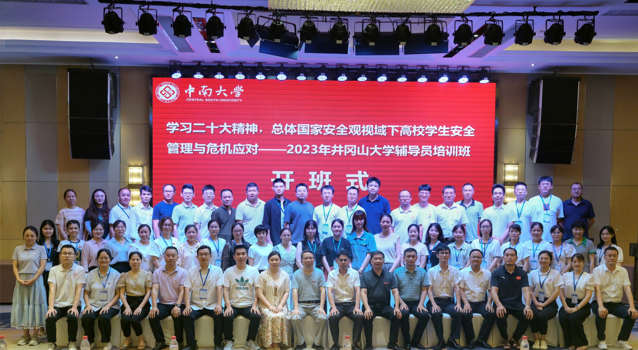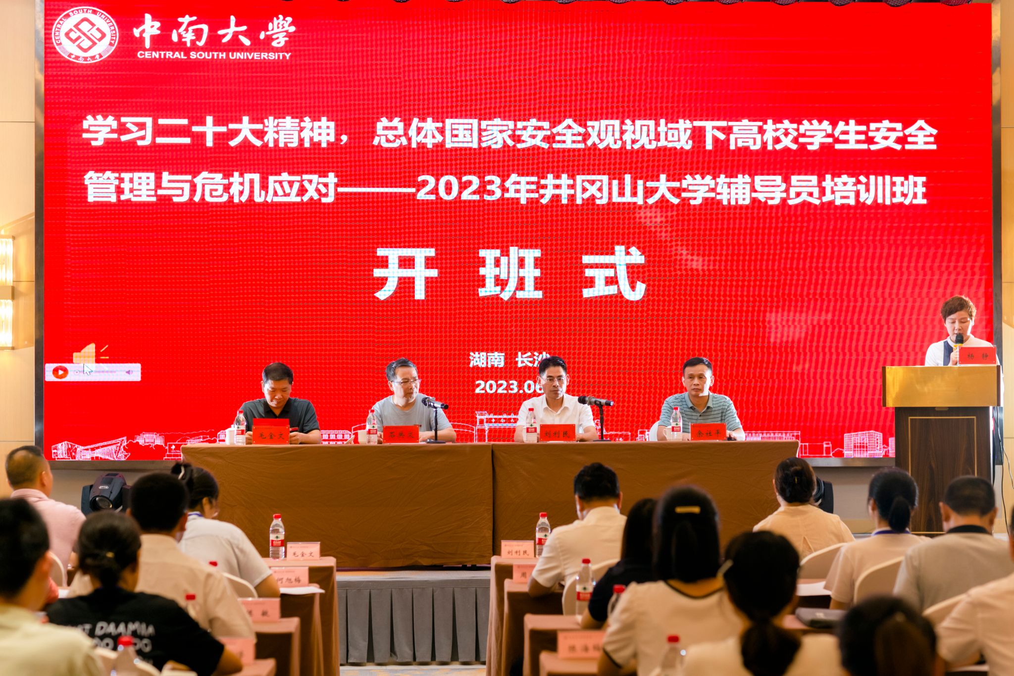 为深入学习贯彻落实习近平新时代中国特色社会主义思想和党的二十大精神,深入学习习近平总书记总体国家安全观及新时代思想政治工作的重要论述,落实立德树人根本任务、全面提升辅导员素质能力,推动主题教育走深走实,6月30日晚,“学习二十大精神,总体国家安全观视域下高校学生安全管理与危机应对”井冈山大学辅导员专题培训班开班仪式在湖南长沙举行。校党委常委、副校长刘利民出席仪式并讲话,中南大学继续教育学院党总支书记石共文出席并致欢迎词,我校学生工作部(处)、中南大学继续教育学院相关负责人及全体参训辅导员共计70余人参加了开班仪式。