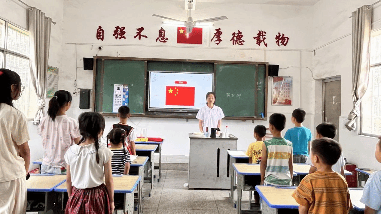 培养爱国精神,从娃娃抓起!社会工作研究生“童心筑梦伴成长,守护童心向未来”社会实践团为吉水县低坪村的留守儿童开设饱含深意的爱国教育主题宣讲课堂。引导孩子们更加深入的学习习近平新时代中国特色社会主义思想,学会正确理解和表达对祖国的爱,培养他们的家国情怀和责任意识。实践队员蒋如娜用红色小知识引导,围绕“为什么要爱国”“怎么爱国”和“祖国我想对你说”三个部分进行宣讲,为孩子们深入浅出地讲述了爱国的重要性引导大家正确表达爱国情。队员还以案例故事的形式,生动讲述英雄故事,通过一个个鲜活生动的英烈事迹传递爱国精神和家国情怀。