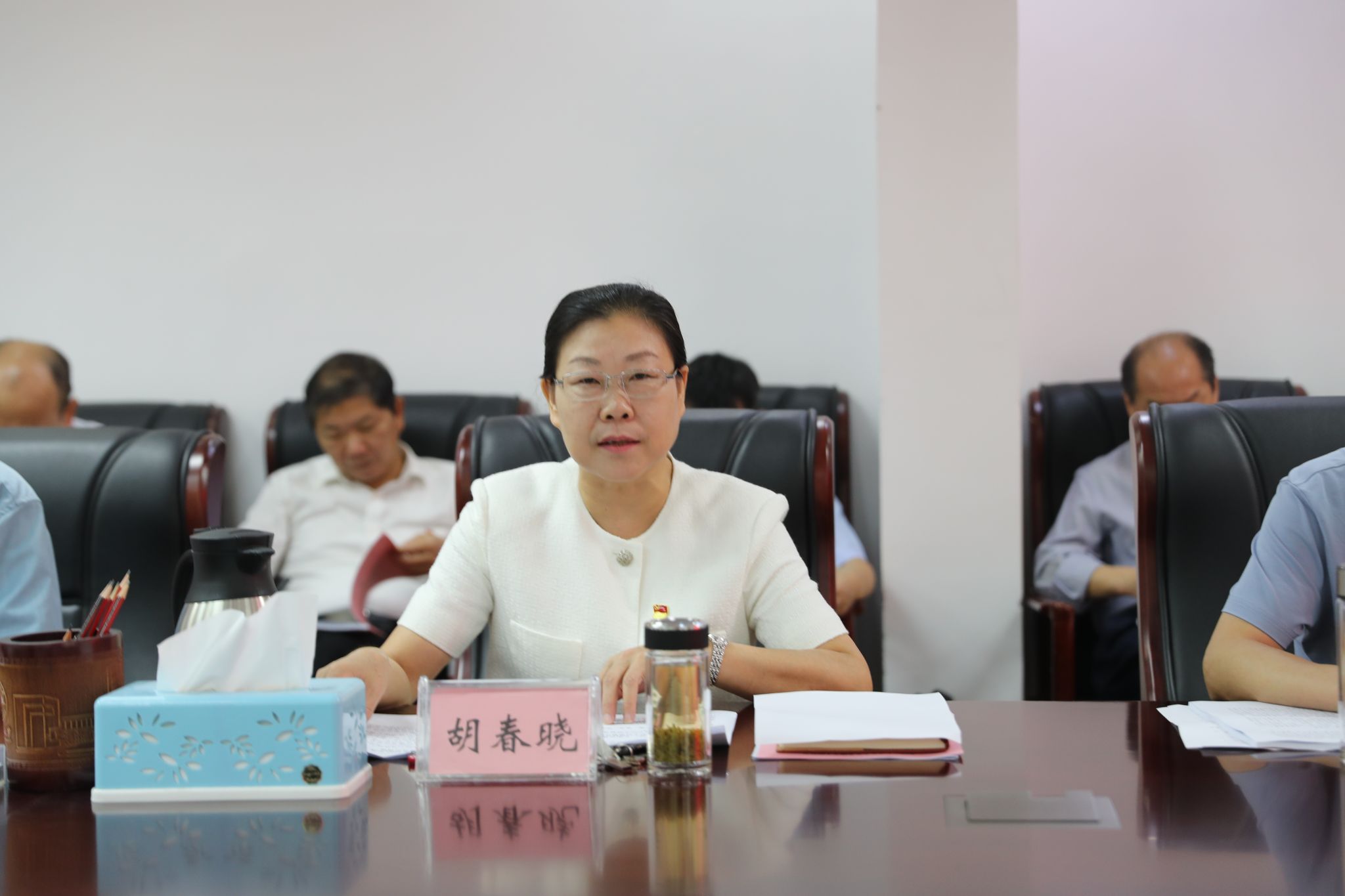 胡春晓对主题教育专题民主生活会的准备情况进行了说明,代表班子通报了2022年度民主生活会班子问题整改措施落实情况,并代表班子进行对照检查,重点对照8个方面认真查找存在的问题,深刻剖析问题产生的根源,提出整改的思路和措施。