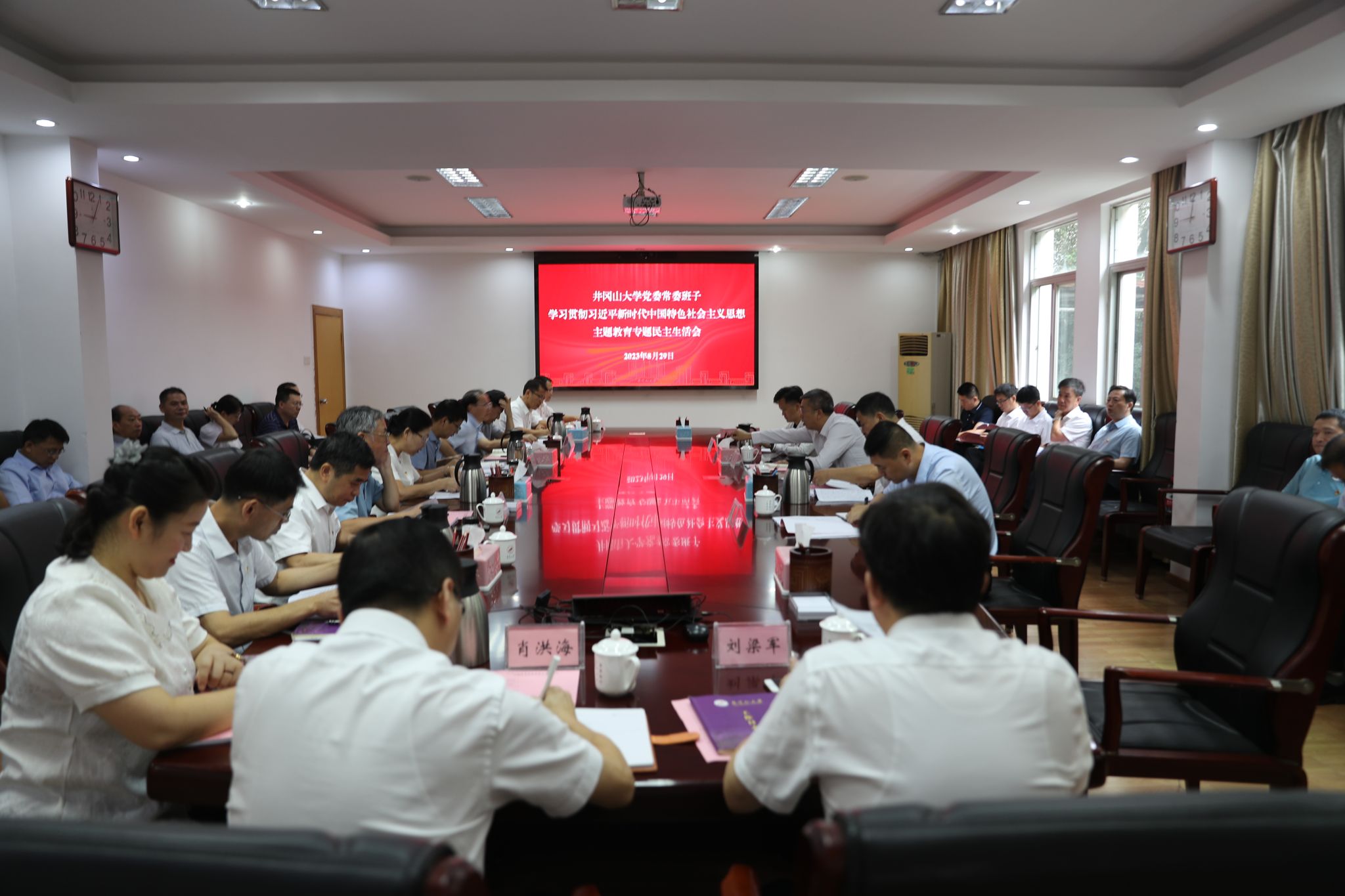 根据省纪委、省委组织部、省委主题教育领导小组部署要求,8月29日,学校党委常委班子召开2023年主题教育专题民主生活会。省委第九巡回指导组副组长陈鹏,成员张勇、万叶松、张道勇到会指导,学校全体党委常委领导班子成员胡春晓、罗旭彪、陈小林、黄俭根、肖宜安、李军、刘利民、冷明、廖岚、欧阳杰、肖洪海、刘梁军出席,会议由党委书记胡春晓主持。此前,党委常委班子成员开展了集中学习和谈心谈话。
