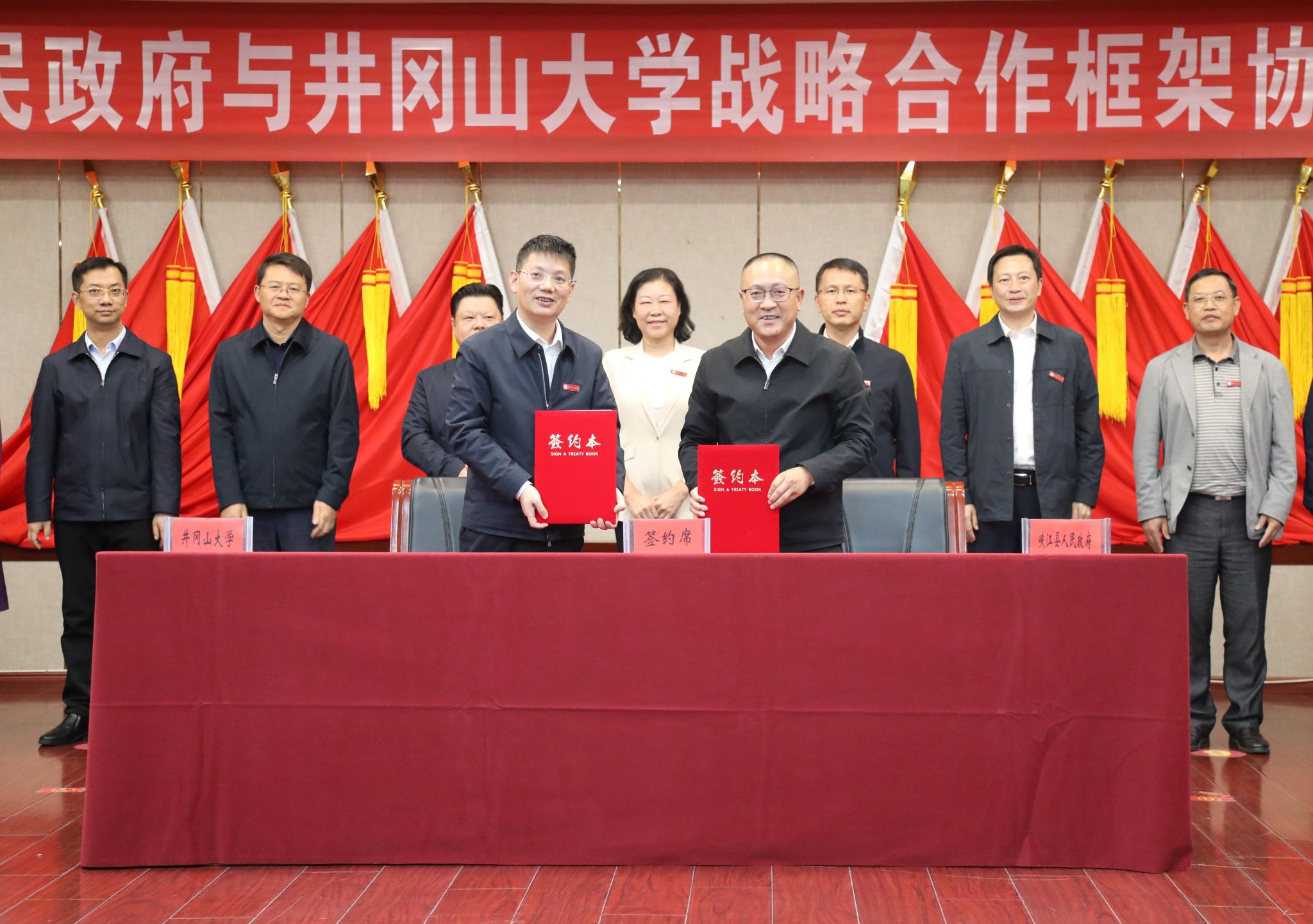 10月23日,我校与峡江县人民政府战略合作框架协议签约仪式在峡江县举行。校党委书记胡春晓、峡江县委书记尹嵘峰分别致辞。校党委副书记、校长罗旭彪与峡江县委副书记、县长谢启龙签约。校党委常委、副校长冷明,峡江县领导聂建林、李宁宇、陈仁华等出席,峡江县有关部门负责人以及我校有关部门、学院负责人参加仪式。