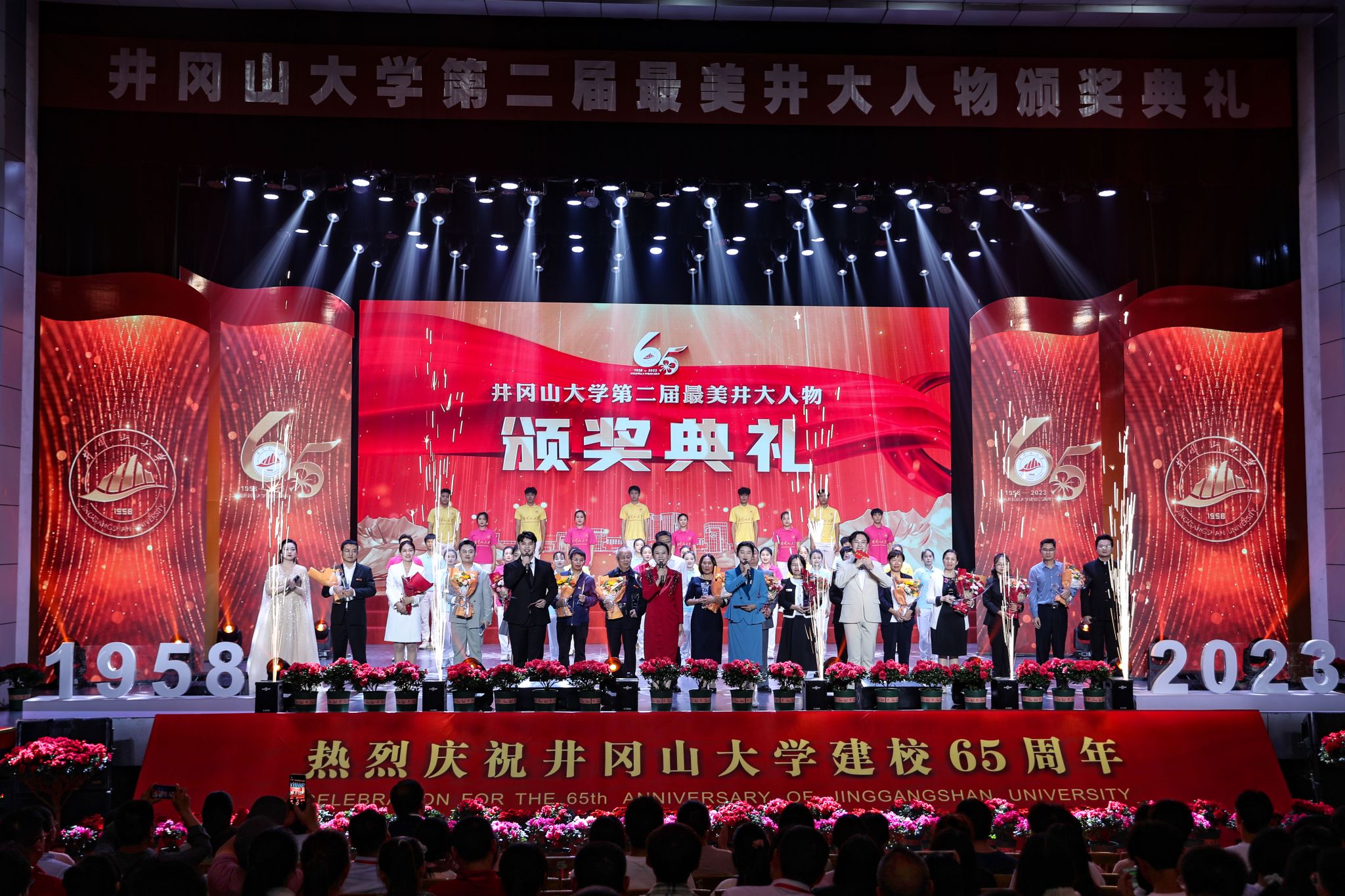 典礼上,还穿插了情景舞蹈《迎着朝阳》、女生表演唱《微光》、群舞《春风吹来井冈绿》、歌曲《追寻》、歌舞《再一次出发》等节目。深情歌颂了用爱心点亮学生的未来,用耐心浇灌学生的成长,能点亮每个人天空的井大教职工,赞美了扎根井冈热土,服务社会,助力乡村振兴,用勤劳与奋斗书写新时代篇章的井大师生,井冈山大学的高质量发展离不开老师们教书育人科研创新。追求梦想,师生同行,这是一段壮丽奋斗的历程,更是一份永不止步的信念,最美井大人,最美井大梦,一定会再次扬帆启航。典礼最终在领导、嘉宾上台与获奖人和参演人员合影留念中圆满结束。
