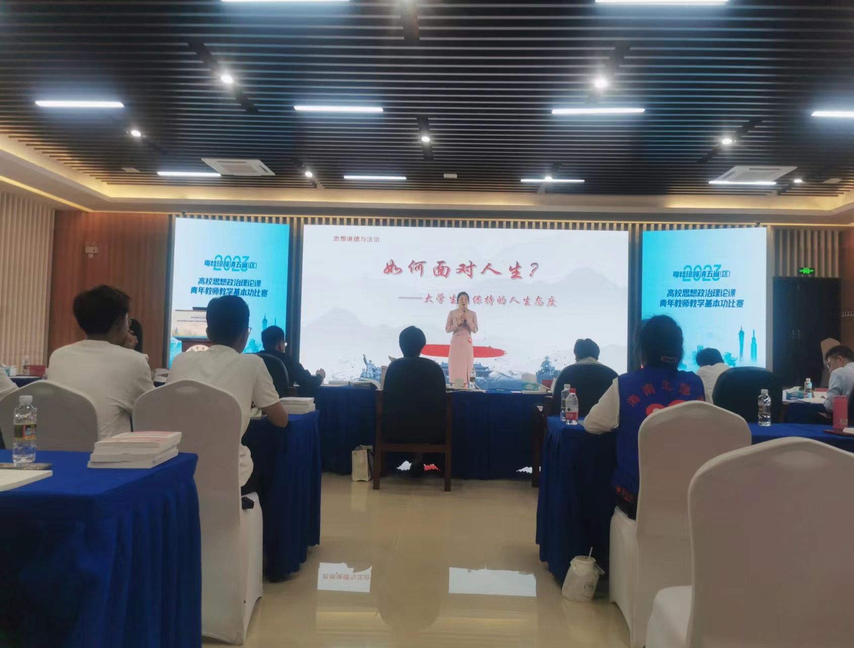 该赛事由广东省教育厅、广西壮族自治区教育厅、海南省教育厅、江西省教育厅、云南省教育厅主办,各省(区)通过初赛选拔本省(区)本科组和高职高专组的优秀教师参加决赛(每门课程选拔1名参赛教师)。决赛的讲课内容由现场抽签决定,抽签后参赛教师需在2小时内完成教学设计稿和其他教学准备,现场比赛含20分钟的现场讲课和5分钟的专家提问两个环节。我校郑佩老师以“思想道德与法治”课初赛第一名的成绩代表江西参加决赛,在决赛中发挥出色,展示了扎实的教学基本功和应变能力。