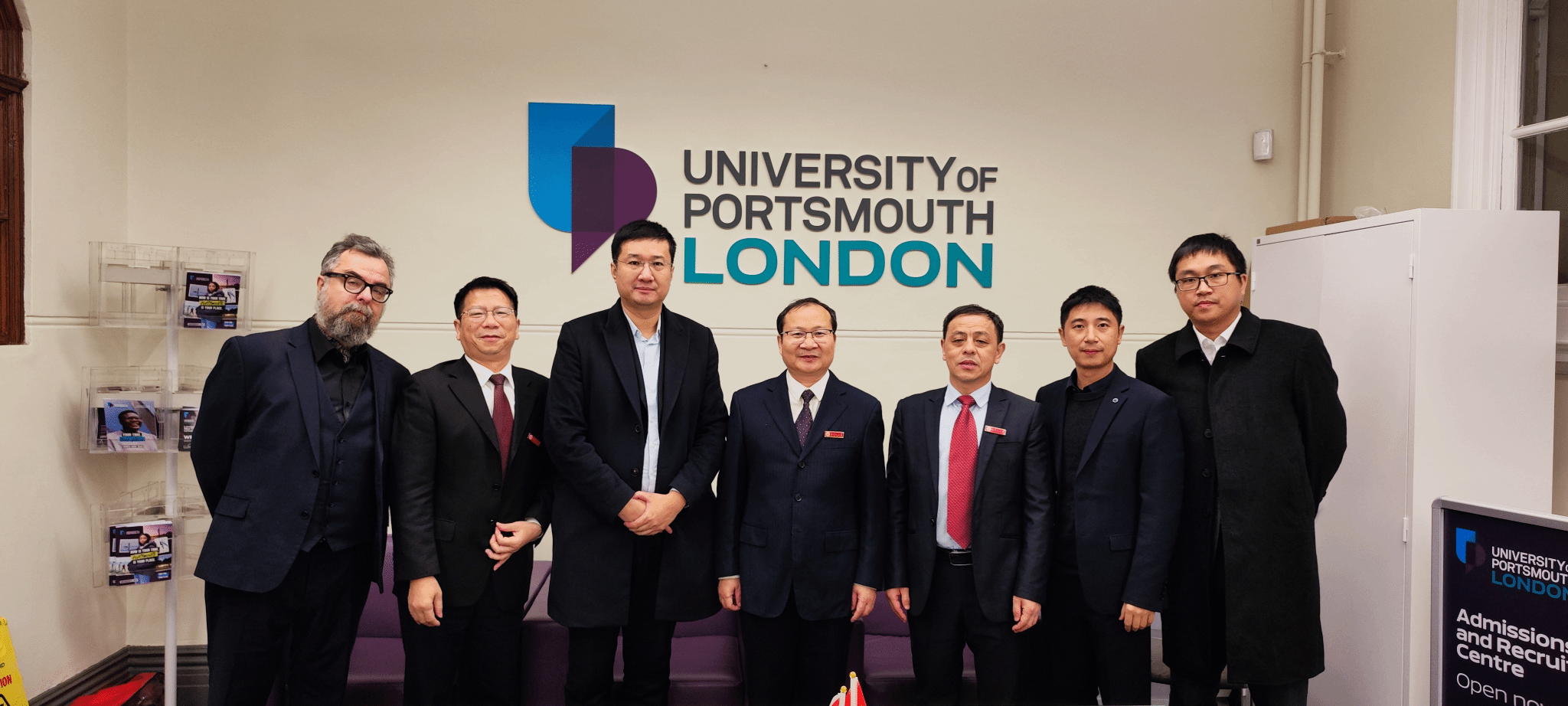 在朴次茅斯大学(伦敦校区),该校执行副校长刘凯接待了代表团一行。座谈会上,双方介绍了学校的基本情况,并就人员互访、教师学术交流、学生短期文化交流等具体事项进行了深入探讨,并一致同意尽快促成项目落地。