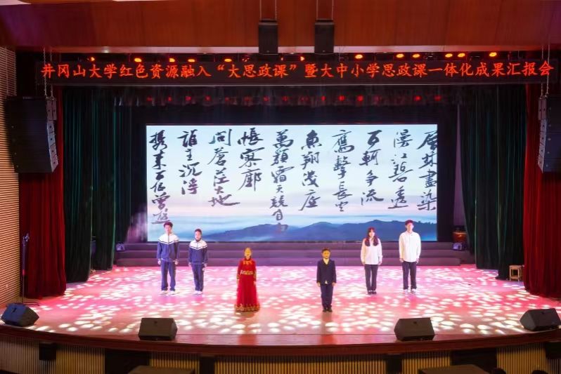 为深入学习贯彻党的二十大精神,进一步推动红色资源融入人才培养的全过程,12月23日,井冈山大学马克思主义学院主办的2023年红色资源融入“大思政课”暨大中小学思政课一体化实践教学汇报会在音乐厅举行。校党委副书记肖宜安,党委常委、宣传部长肖洪海出席并观看汇报会。马克思主义学院全体教师以及井冈山大学、白鹭洲中学、井冈山大学附属中学、石阳小学、北门小学共计300多名师生参加。