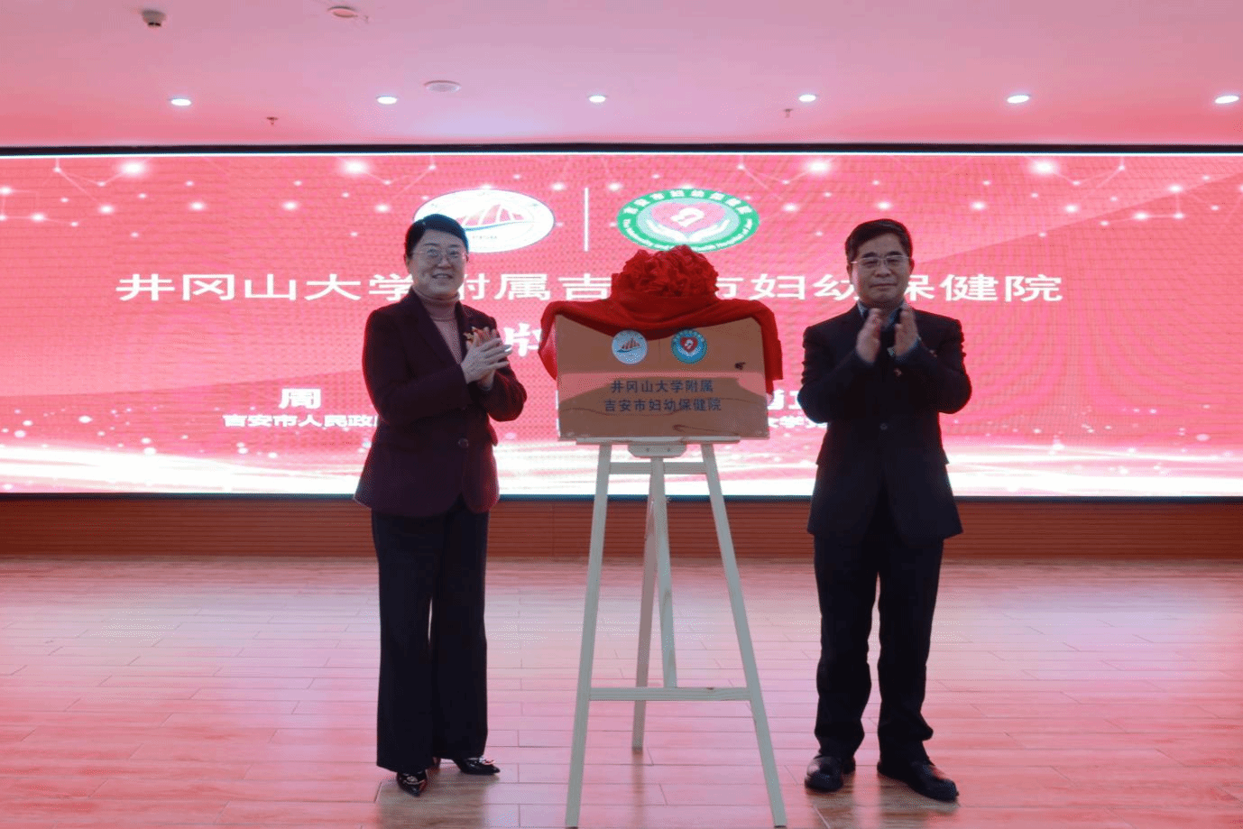 3月13日上午,井冈山大学附属吉安市妇幼保健院揭牌签约仪式在吉安市妇幼保健院举行,吉安市人民政府副市长周密,井冈山大学党委副书记肖宜安共同为井冈山大学附属吉安市妇幼保健院揭牌。井冈山大学党委常委、副校长廖岚与吉安市妇幼保健院院长邱瑜分别代表双方签订合作协议。廖岚、吉安市卫健委主任李发芽、吉安市妇幼保健院院长邱瑜分别致辞。