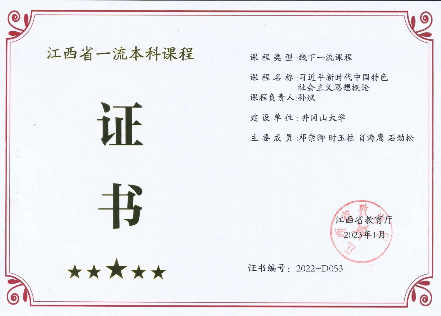 持续推进思政课改革创新,将红色文化优势转化为教育教学资源优势。学院充分利用井冈山红色资源优势,着力打造“主体课堂、实践课堂、环境课堂”有机融合的“三维一体”思政金课。学院获教育部家门口的“大思政课”实践教学基地结对项目,获批江西省大中小学思政课一体化共同体试点建设项目,获批江西省高校思政课实践教学和社会实践学分(学时)互认机制试点项目,红色资源融入“大思政课”教学改革创新团队获批江西省高校思政课教学改革创新团队,“永远的井冈山”思政课教学团队获批江西省高水平本科教学团队,“习近平新时代中国特色社会主义思想概论”获批江西省线下课程一流本科课程,“黄洋界保卫战”虚拟仿真项目获批江西省虚拟仿真实验教学一流课程,获批江西省“专题+艺术”特色思政课。