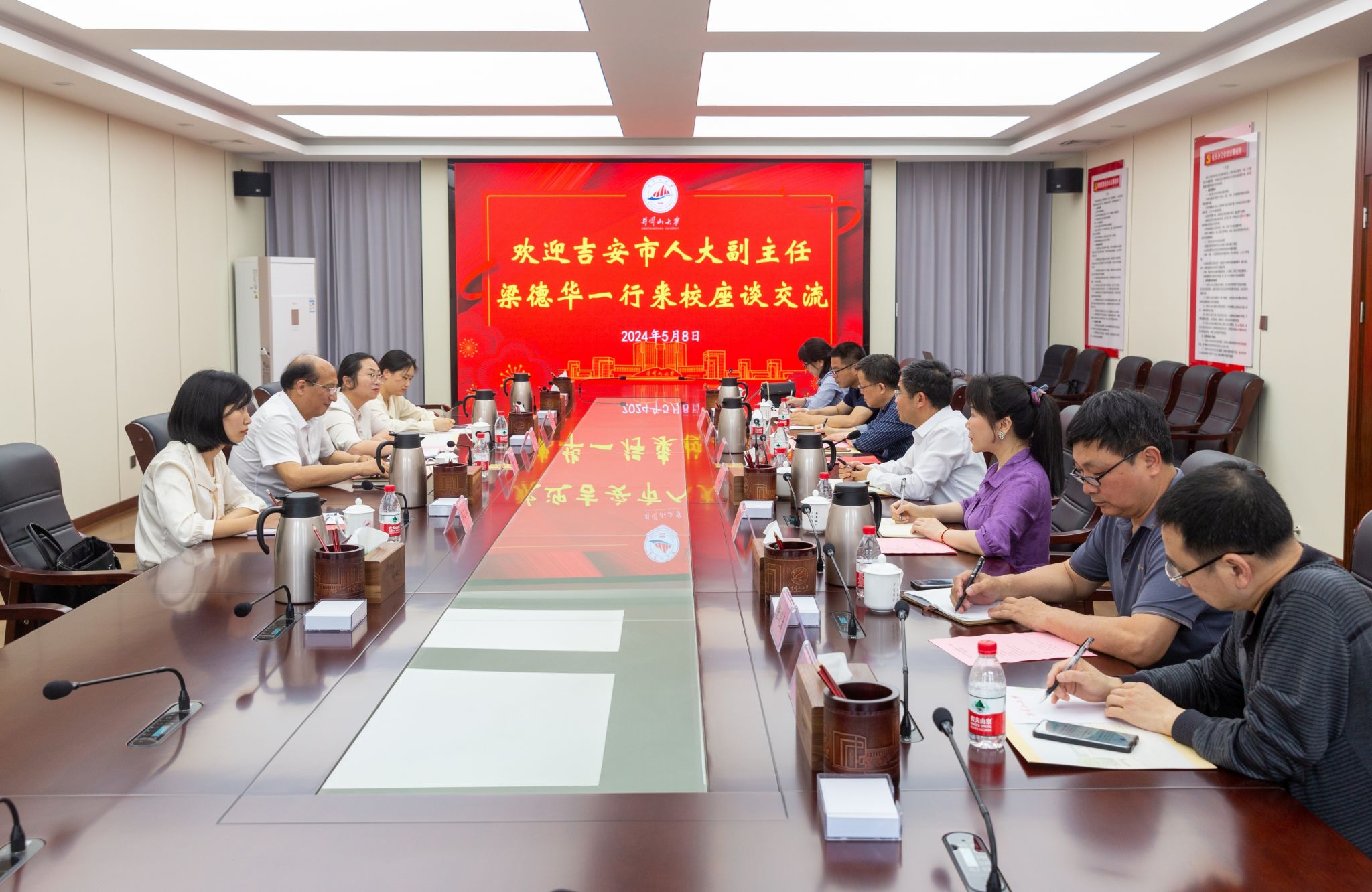 5月8日,吉安市人大常委会副主任、民盟吉安市委会主委梁德华一行4人来校座谈交流。校党委副书记肖宜安主持座谈会,校党委常委、统战部部长刘梁军出席,民盟井冈山大学委员会负责人及骨干成员,党委统战部全体人员参加座谈会。