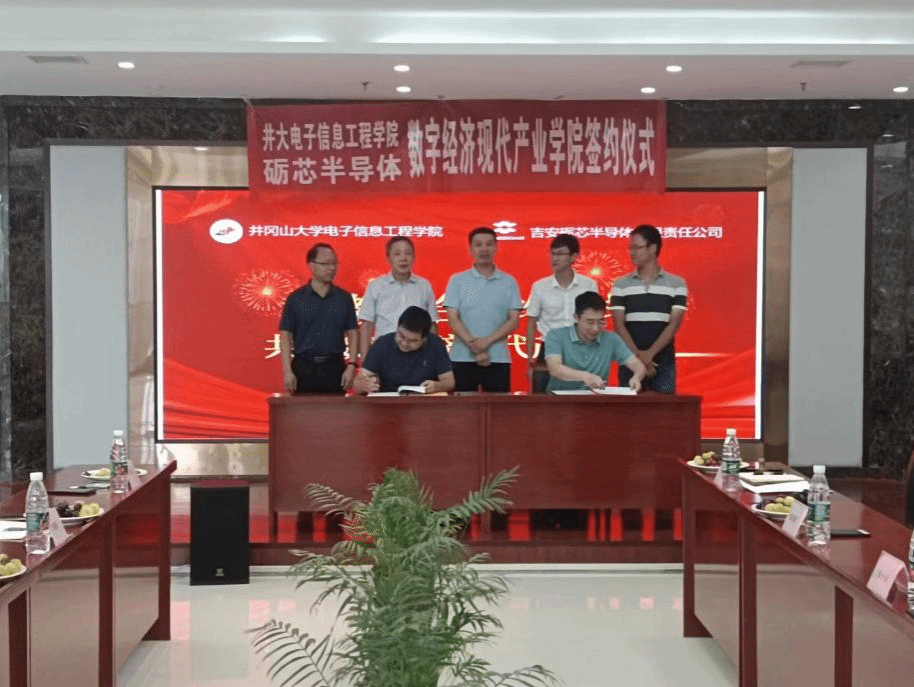 2022年5月,在学院与北京龙誉教育洽谈的基础上,学校成立了井冈山大学数字经济现代产业学院,以提高人才培养能力为核心,以提升新型应用人才培养质量为目标,服务于吉安市数字经济产业发展。同时,学院以获批的“十四五”江西省首批教育强国推进工程项目“井冈山大学电子信息产业优势学科群产教融合实训基地项目”为契机,着力推进人才链、创新链和产业链的有机衔接,助推区域电子信息产业发展。