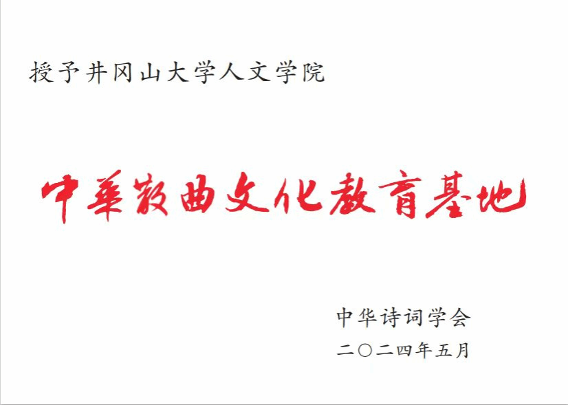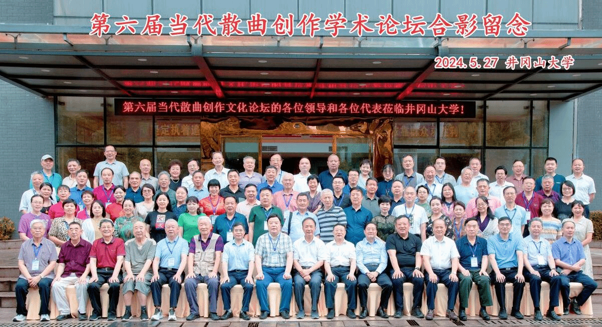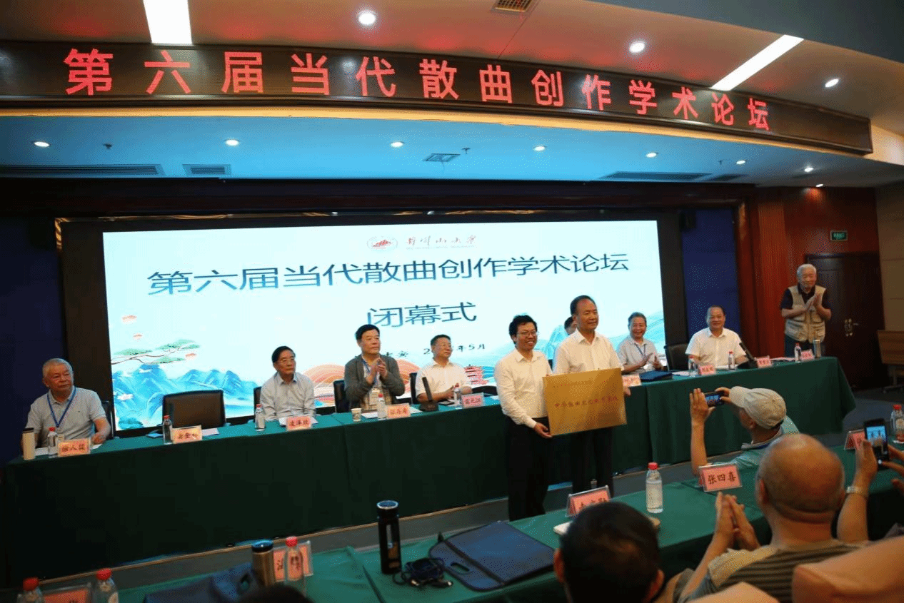 由井冈山大学人文学院、中华诗词学会散曲工作委员会、江西省诗词学会共同举办的第六届当代散曲创作学术论坛5月26日至28日在我校召开,中华诗词学会授予人文学院“中华散曲文化教育基地”牌。中华诗词学会会长、国家行政学院原副院长周文彰,江西省政协原副主席雷元江,中华诗词学会副会长张存寿,中华诗词学会顾问、散曲工委主任徐耿华,中华诗词学会顾问、评论委员会主任凌泽欣,江西省诗词学会会长、省政府参事何建洋,井冈山大学党委副书记肖宜安,党委常委、副校长冷明、黄族豪,江西省诗词学会常务副会长、《中国当代散曲》主编、人文学院中文系校友章学方等领导出席会议。来自中华诗词学会及全国20个省市区的专家学者、诗人、曲家及学院教师近200人参会。