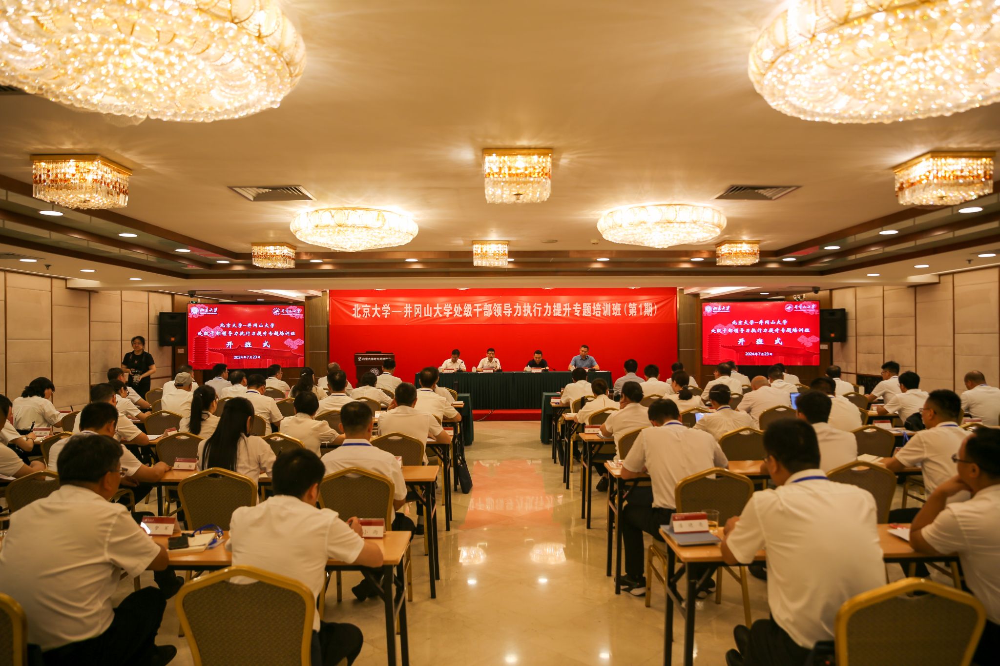 7月25日,我校第一期处级干部领导力执行力提升专题培训班在北京大学举行结业式。党委副书记肖宜安出席并讲话,党委常委、副校长冷明主持,敖四江、黄族豪、肖洪海、刘梁军、梁景宏、张赫等校党政班子成员出席结业式并为学员颁发结业证书。
