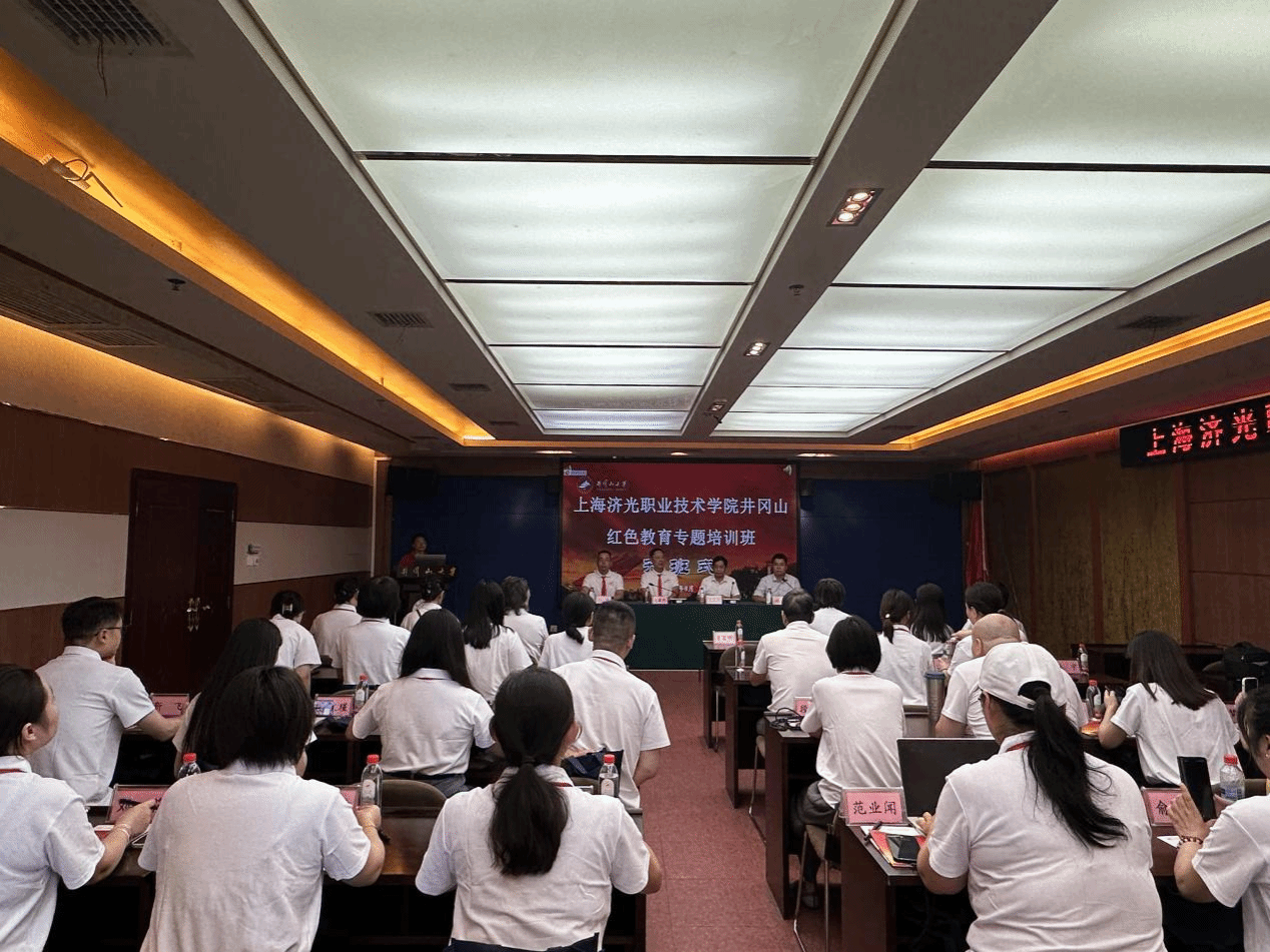 8月25日,上海济光职业技术学院井冈山红色教育专题培训班在我校开班,井冈山大学党委副书记肖宜安致辞并授旗,上海济光职业技术学院党委书记姜富明向井冈山大学赠送锦旗并讲话,上海济光职业技术学院副校长孙遥出席,开班式由井冈山大学校长助理张赫主持,全体学员参加了开班式。