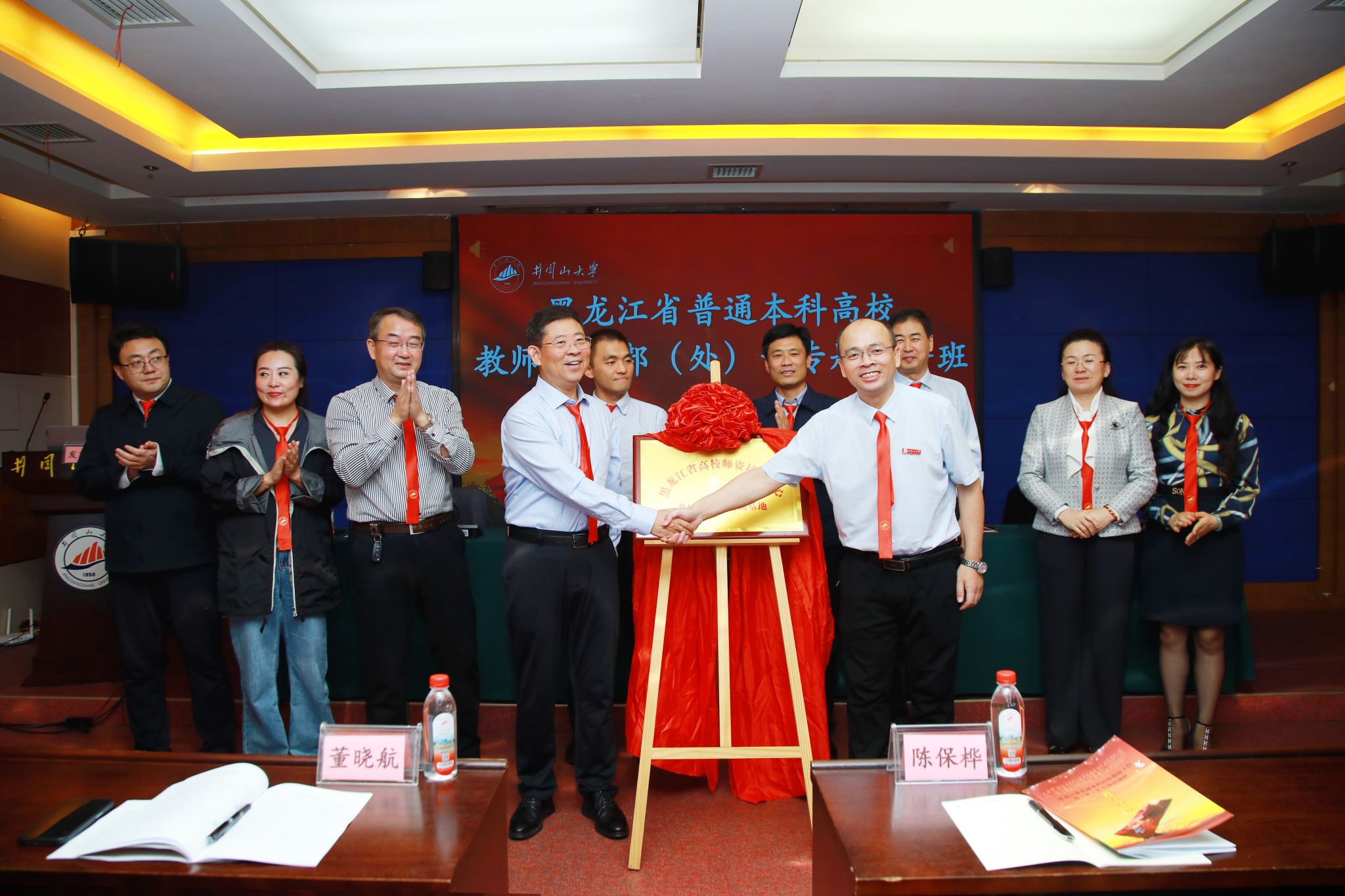 揭牌仪式后,举行了黑龙江省普通本科高校教师工作部(处)长专题研修班开班式,黄族豪致辞并为研修班授旗,哈尔滨商业大学人事处(教师工作部)处长周晓生代表学员发言。