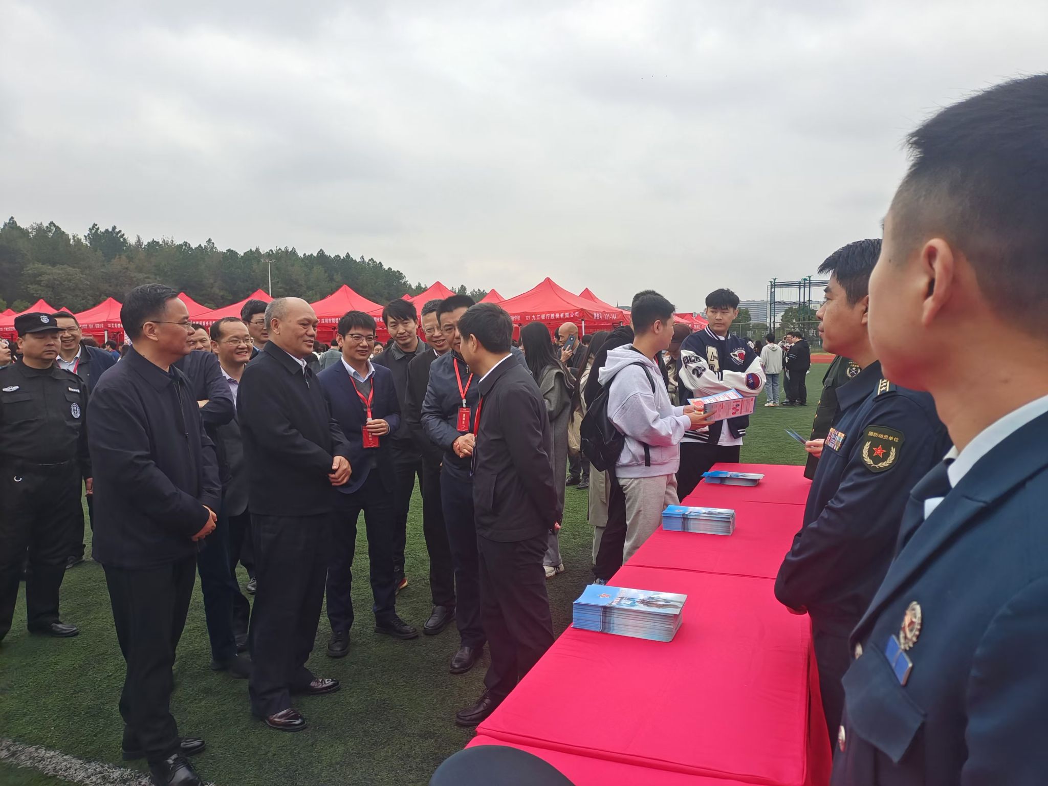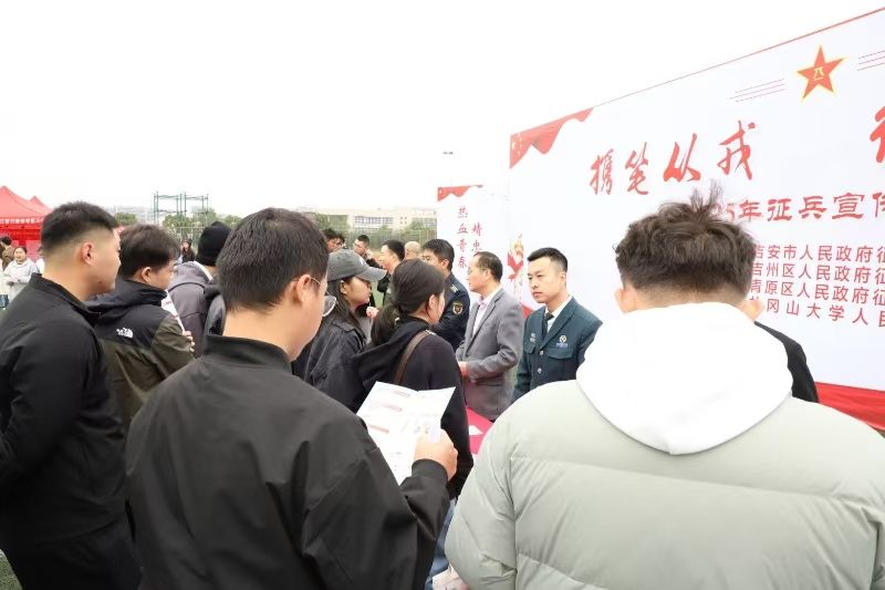 11月19日,由吉安市人民政府征兵办主办,吉州区、青原区人民政府征兵办和我校人武部承办的“携笔从戎、绽放青春”——2025年征兵宣传活动在校举行。活动期间,校党委副书记、校长罗旭彪,党委常委、副校长冷明等一行到现场询问活动开展情况,对征兵宣传工作给予充分肯定。党委常委、副校长敖四江、吉安军分区、青原区人武部、吉州区人武部及我校人武部负责人来到活动现场,向大学生宣传国防知识和征兵政策,并对大学生应征入伍流程,参军优待,退伍待遇等内容作了详细介绍。