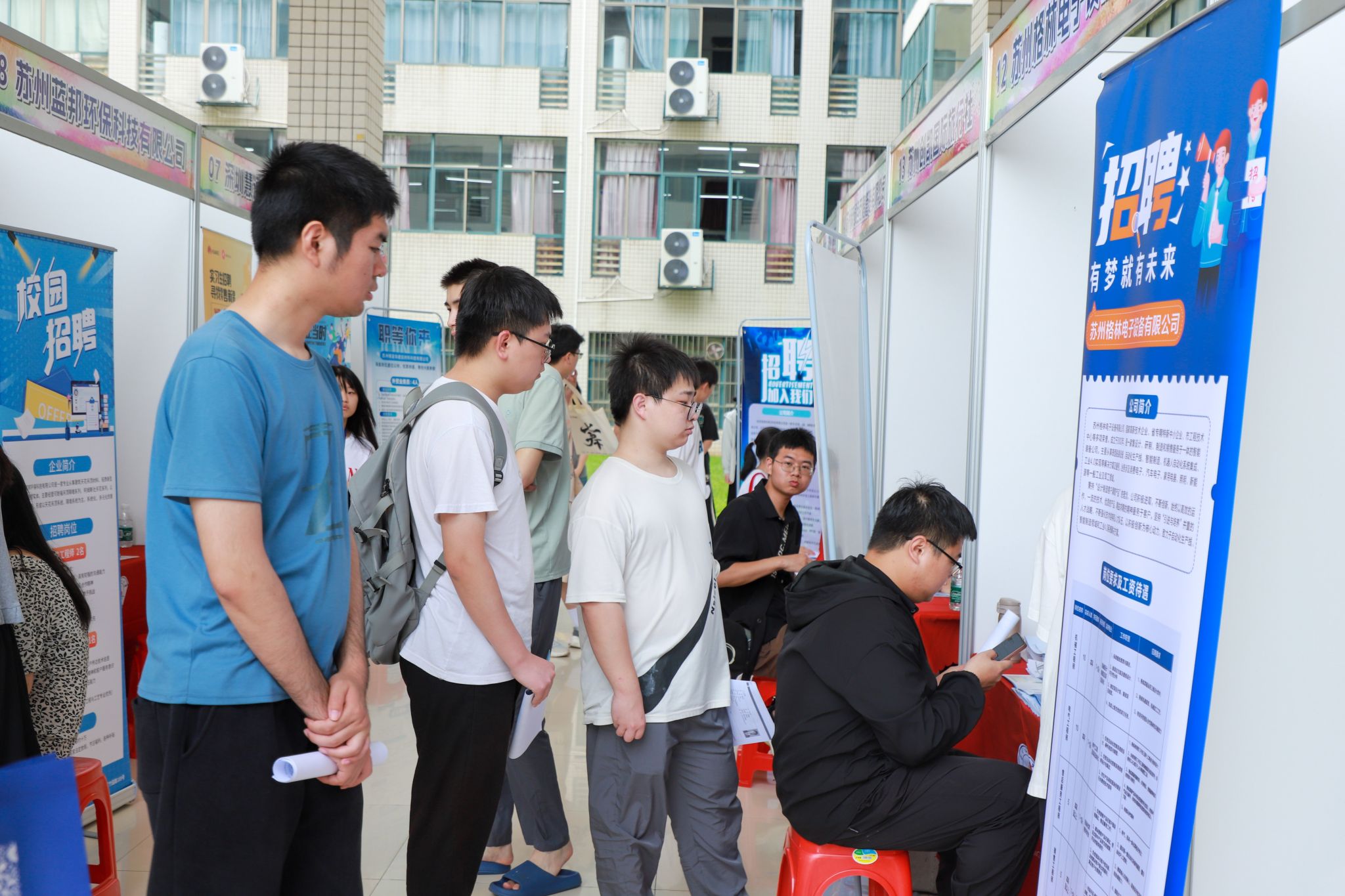 5月22日,苏州企业专场招聘会在第十教学楼大厅举行。苏州市江西商会、井冈山大学苏州校友会带领21家优质企业,为我校毕业生带来了70余个高质量岗位,岗位需求500余人。招聘会现场吸引了近1000名学生参加,投递简历260余份。