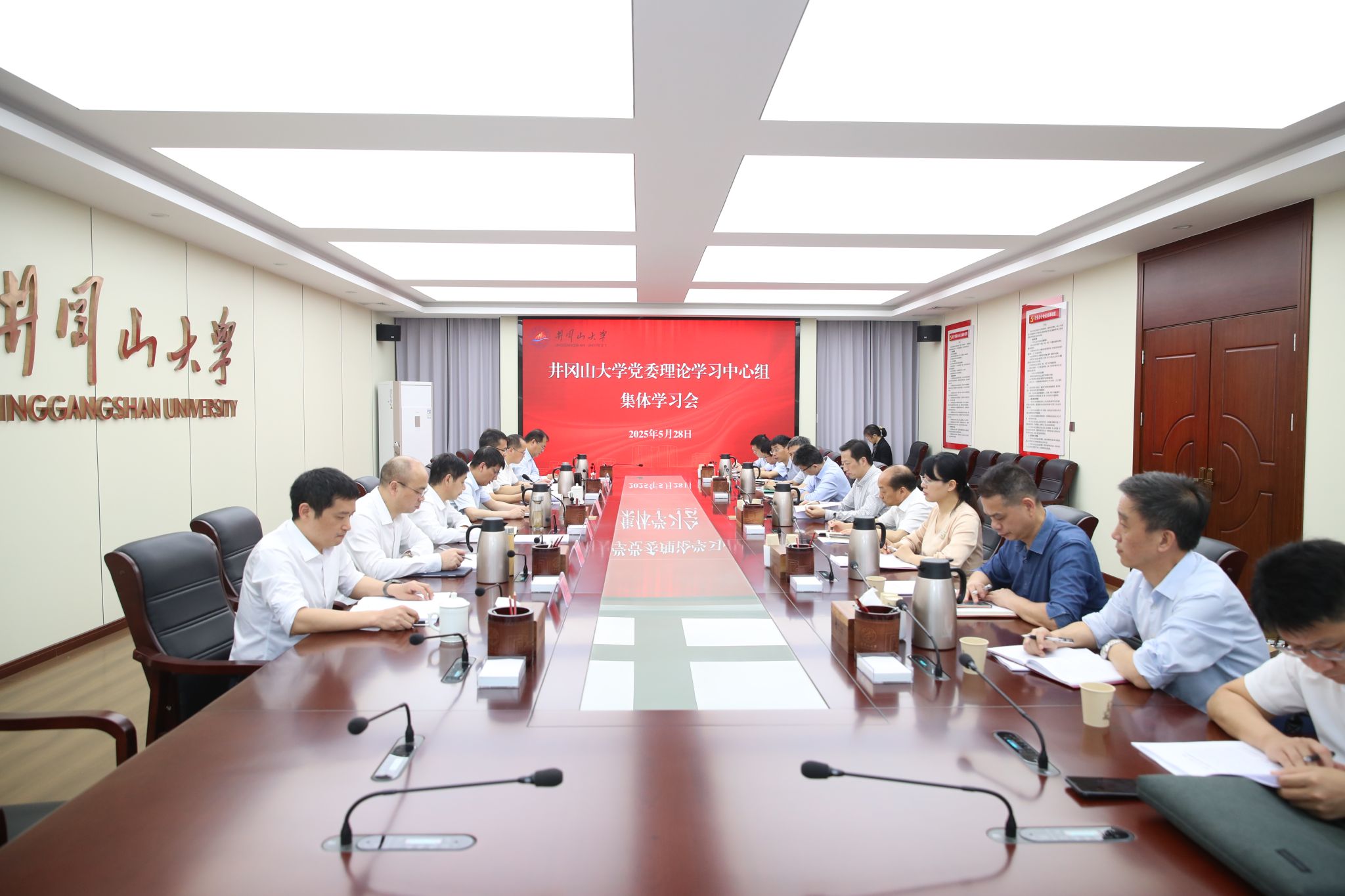 5月28日,根据学校党委理论学习中心组学习安排及上级关于深入贯彻中央八项规定精神学习教育工作要求,结合学校实际,校党委理论学习中心组举行了集体学习会,专题学习习近平总书记关于深入贯彻中央八项规定精神学习教育的重要讲话精神,学习党的十八大以来深入贯彻中央八项规定精神的成效和经验,对照2个问题清单、28个具体问题和基层“四风”10种隐形变异表现,开展违反中央八项规定及其实施细则精神典型案例警示教育。校党委副书记、校长罗旭彪主持集体学习会并讲话,党委理论学习中心组全体在家成员参加了学习会。