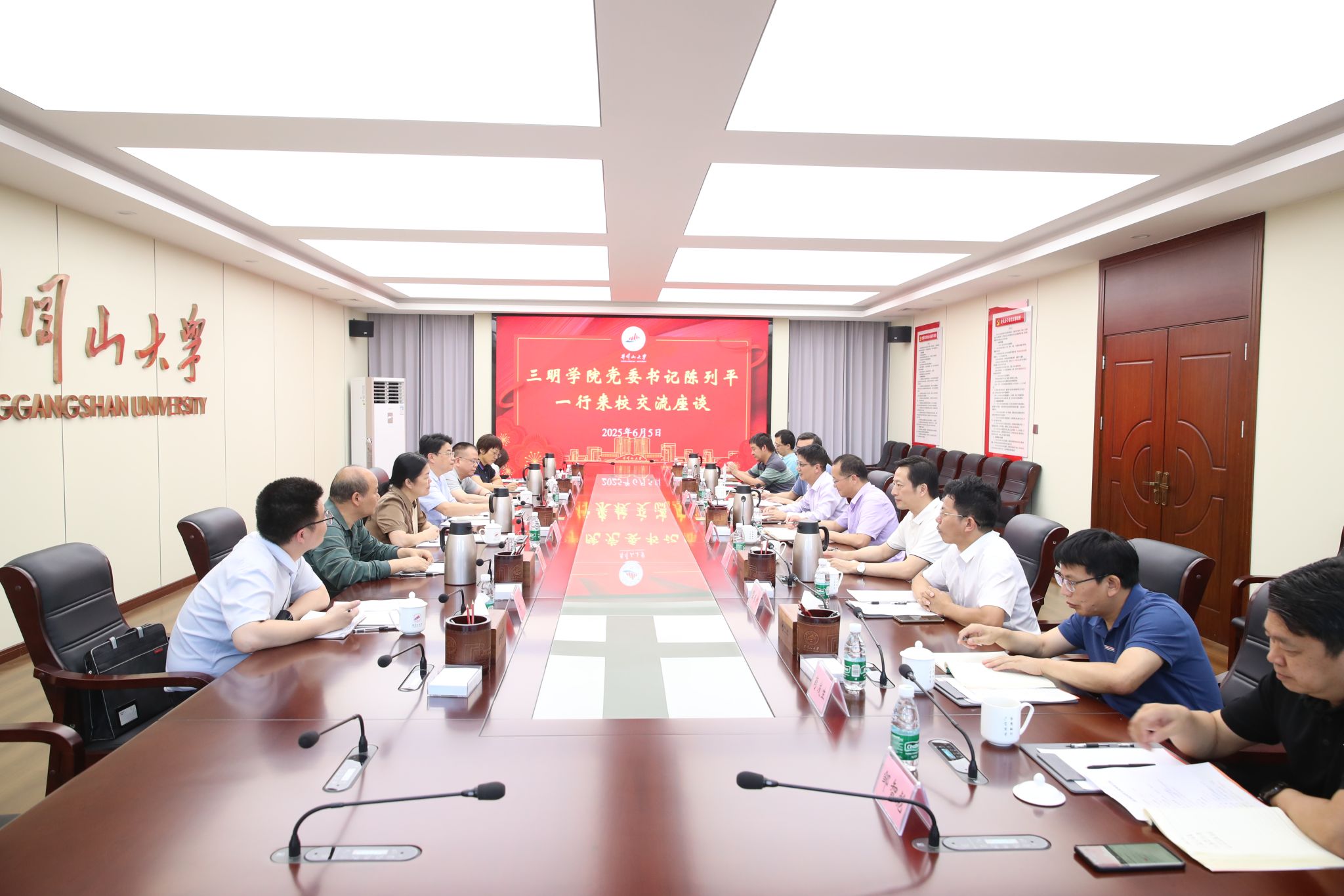 6月5日下午,三明学院党委书记陈列平一行来校交流座谈。校党委副书记、校长罗旭彪出席并讲话,党委常委、副校长敖四江出席并主持会议,校党委常委、宣传部部长肖洪海出席。三明学院及我校相关职能部门负责人参加座谈。双方就革命老区高校建设发展路径展开深入探讨。
