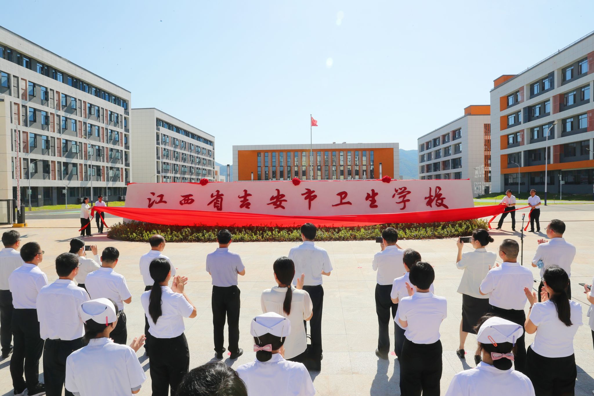 8月25日,江西省吉安市卫生学校揭牌仪式在新校区西大门举行。校党委书记罗旭彪,党委常委、副校长冷明,青原区委书记罗青球,区委副书记、区长曾昭君出席。吉安卫校、校地两方相关部门主要负责人参加仪式。揭牌仪式由曾昭君主持。