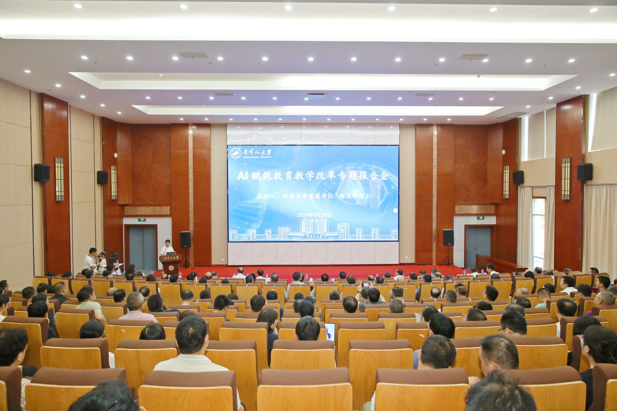 为深入贯彻落实国家关于推动人工智能与教育深度融合的决策部署,加快推进教育教学改革与创新发展,8月26日,学校举行AI赋能教育教学改革专题报告会。中国工程院院士、同济大学党委书记郑庆华教授应邀来校作题为《人工智能赋能教育:赋什么,怎么赋——认识与实践》的专题报告。校党委书记罗旭彪主持报告会,全体校领导出席,郑庆华院士团队成员,全校副处级以上干部,全校各学院系主任、各专业负责人以及电信学院博士教师参加报告会。