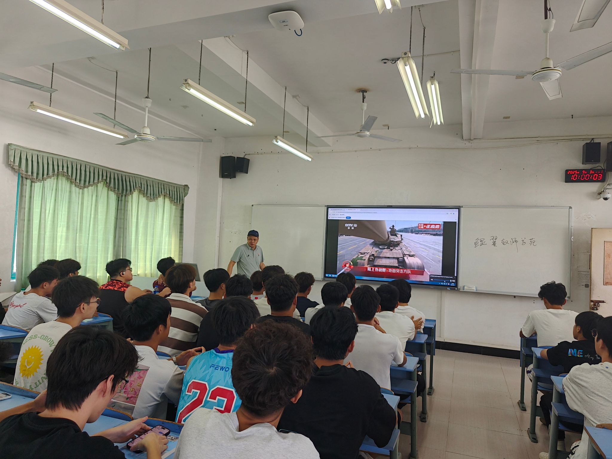 9月3日上午,纪念中国人民抗日战争暨世界反法西斯战争胜利80周年大会在北京天安门广场隆重举行。中共中央总书记、国家主席、中央军委主席习近平发表重要讲话并检阅部队。为深切缅怀革命先烈,弘扬伟大抗战精神,激发大学生的爱国热情和民族自豪感,当天上午,我校认真组织全校师生收听观看纪念大会和阅兵式,凝聚师生的爱国之情。