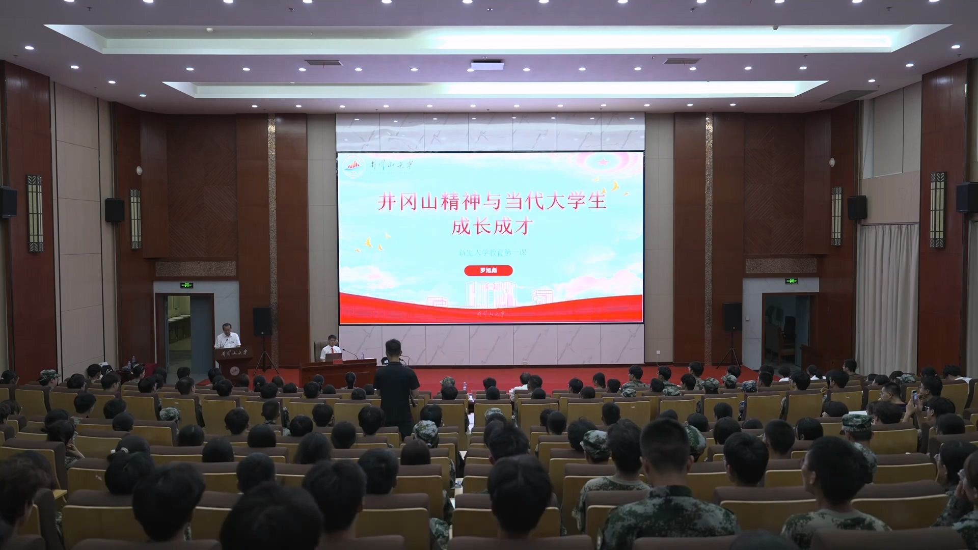 罗旭彪以《井冈山精神与当代大学生成长成才》为题,引导新同学深刻理解“坚定执着追理想、实事求是闯新路、艰苦奋斗攻难关、依靠群众求胜利”的井冈山精神内核,并诠释红色基因赋能青年学子成长成才的路径方法。