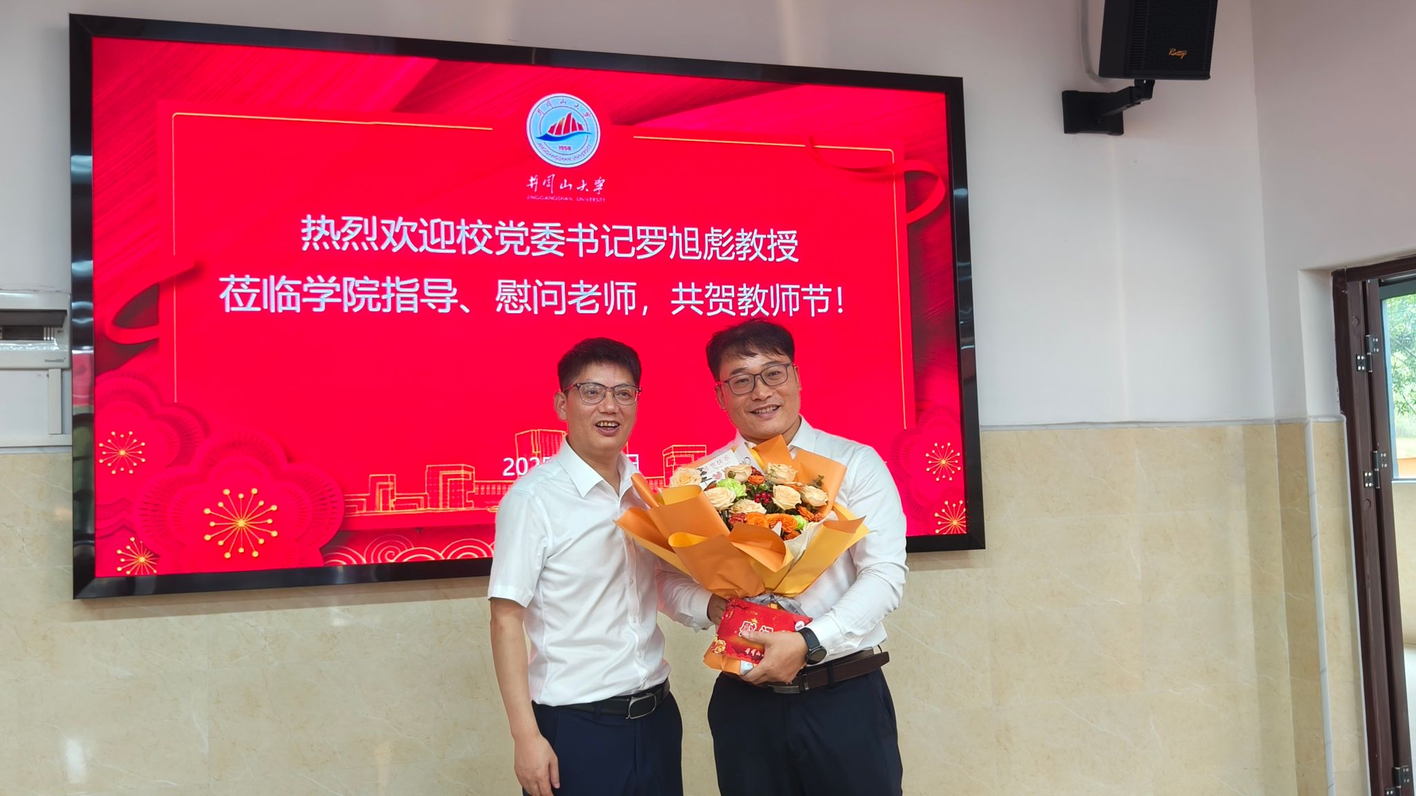 9月9日至10日,2025年教师节来临之际,学校组织开展走访慰问活动。校党委书记罗旭彪,党委副书记肖宜安,以及在家的校领导彭西洪、敖四江、段学民分别带队深入各学院集中看望慰问教师代表,并向辛勤耕耘在教学、科研和管理服务一线的全体教师代表致以节日的祝福和诚挚的问候。