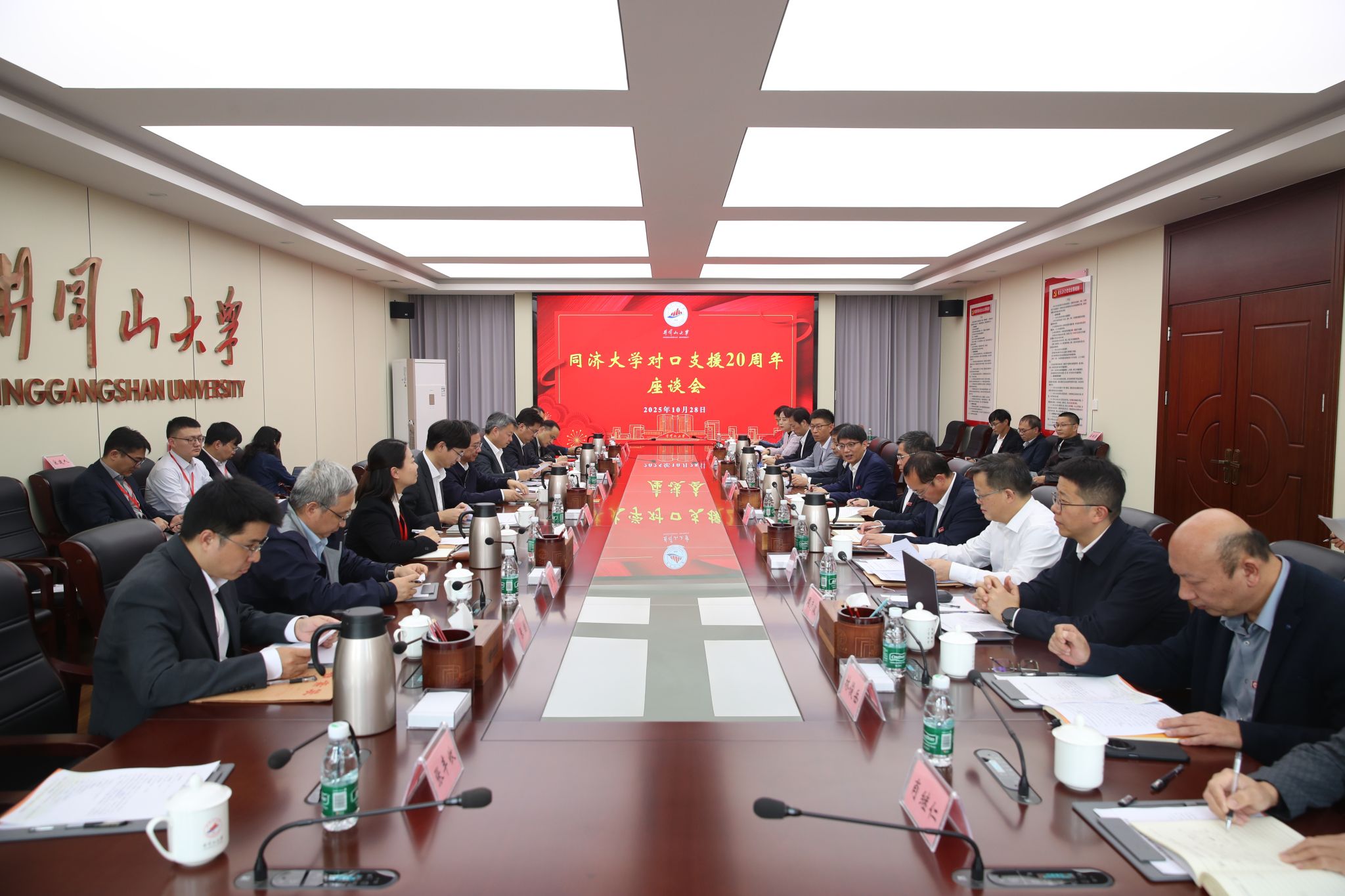 与会人员共同观看了专题片《二十载同心筑梦——同济大学对口支援井冈山大学二十周年纪实》,重温两校合作历程。