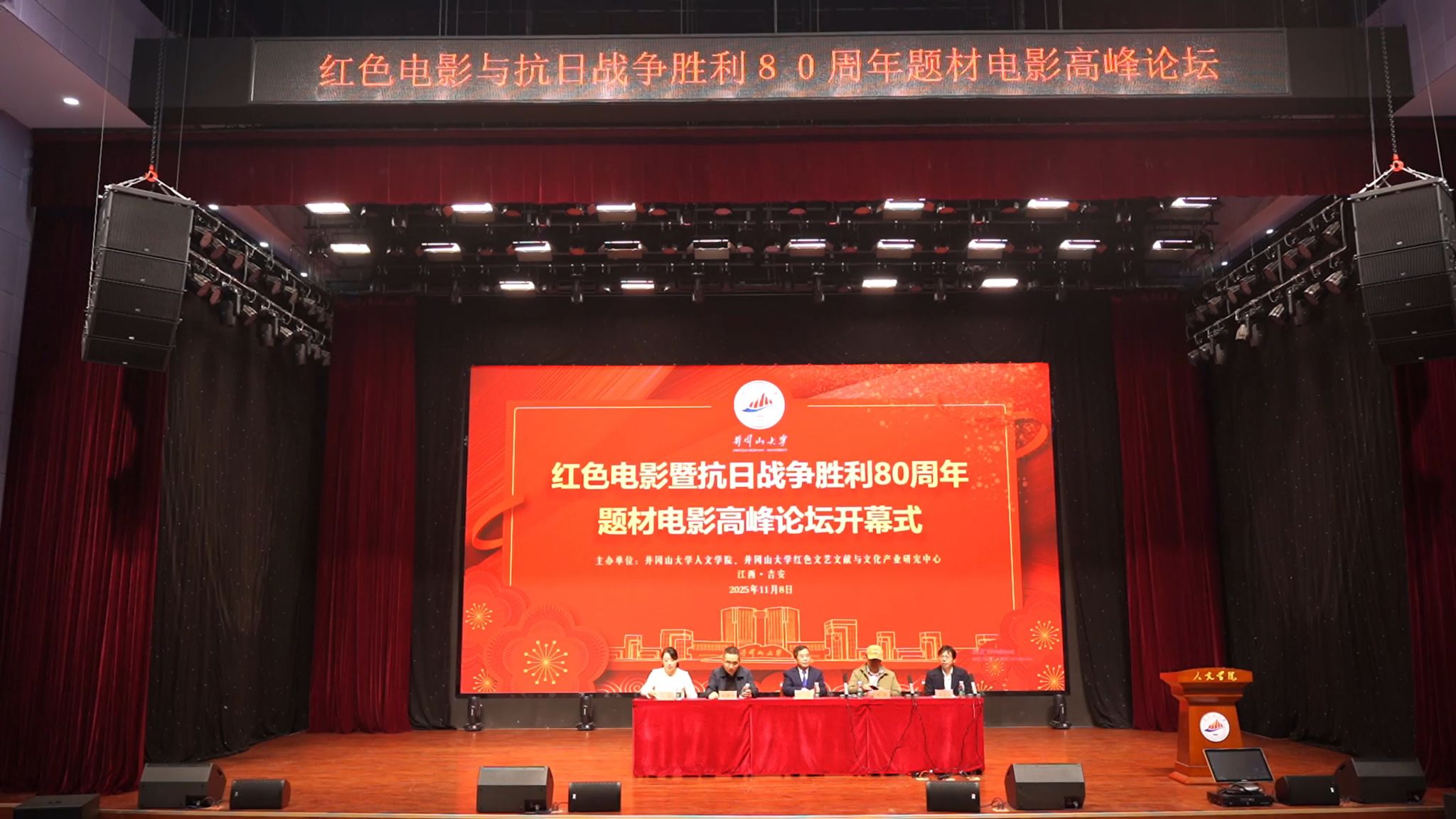 11月8日,人文学院联合学校红色文艺文献与文化产业研究中心,举办了红色电影暨抗日战争胜利80周年题材电影高峰论坛。教育部高校戏剧与影视学类专业教学指导委员会主任、北京师范大学教授、博士生导师周星,教育部“长江学者”特聘教授、北京电影学院教授、博士生导师王海洲出席。省内外专家学者,人文学院党政班子全体成员,师生代表200余人参加论坛。人文学院院长龚奎林主持论坛,校党委副书记肖宜安出席并致辞,党委常委、副校长黄族豪会见了与会专家。