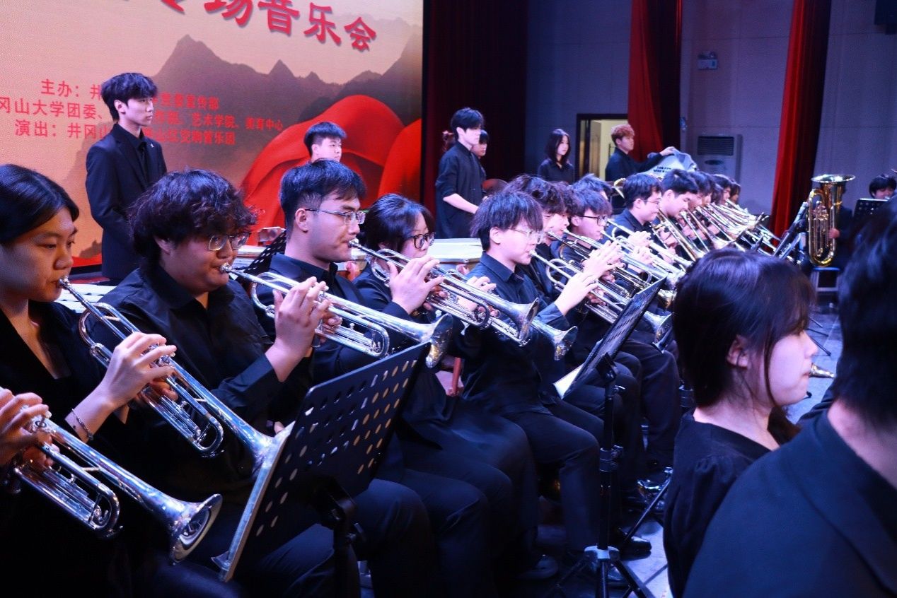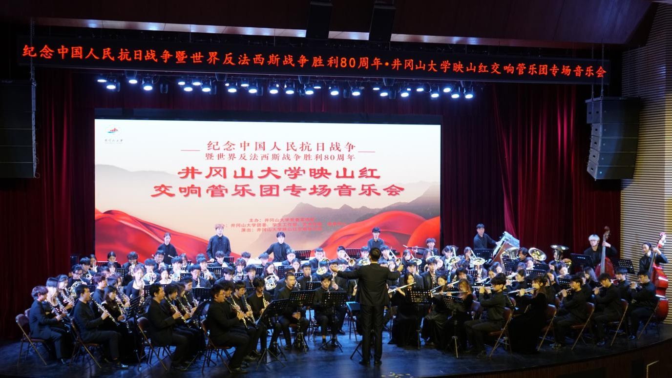 为隆重纪念中国人民抗日战争暨世界反法西斯战争胜利八十周年,11月22日晚,由学校党委宣传部主办,校团委、学生工作部、艺术学院、美育中心联合承办的“井冈山大学映山红交响管乐专场音乐会”在学校音乐厅盛大举行。