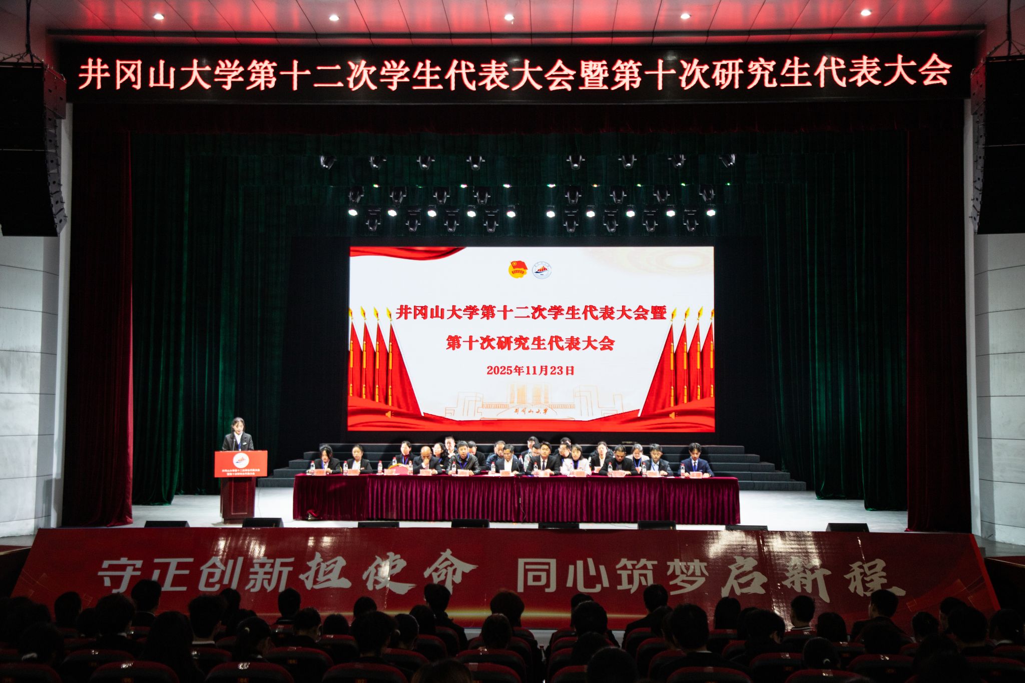 11月22日-23日,学校第十二次学生代表大会暨第十次研究生代表大会在学生会堂顺利召开,校党委副书记肖宜安出席开幕式并讲话,江西省学生联合会驻会执行主席颜润致辞,校团委书记郭敏娜致开幕词,兄弟院校代表江西农业大学学生会执行主席付乐洋致贺词,党委宣传部、校团委、教务处、研究生工作部、人事处、学生工作部、保卫处等部门负责人,江西农业大学和赣南师范大学等兄弟院校学生会代表,各学院分管学生工作的党委领导、团委负责人以及全体学代会、研代会代表参加会议。