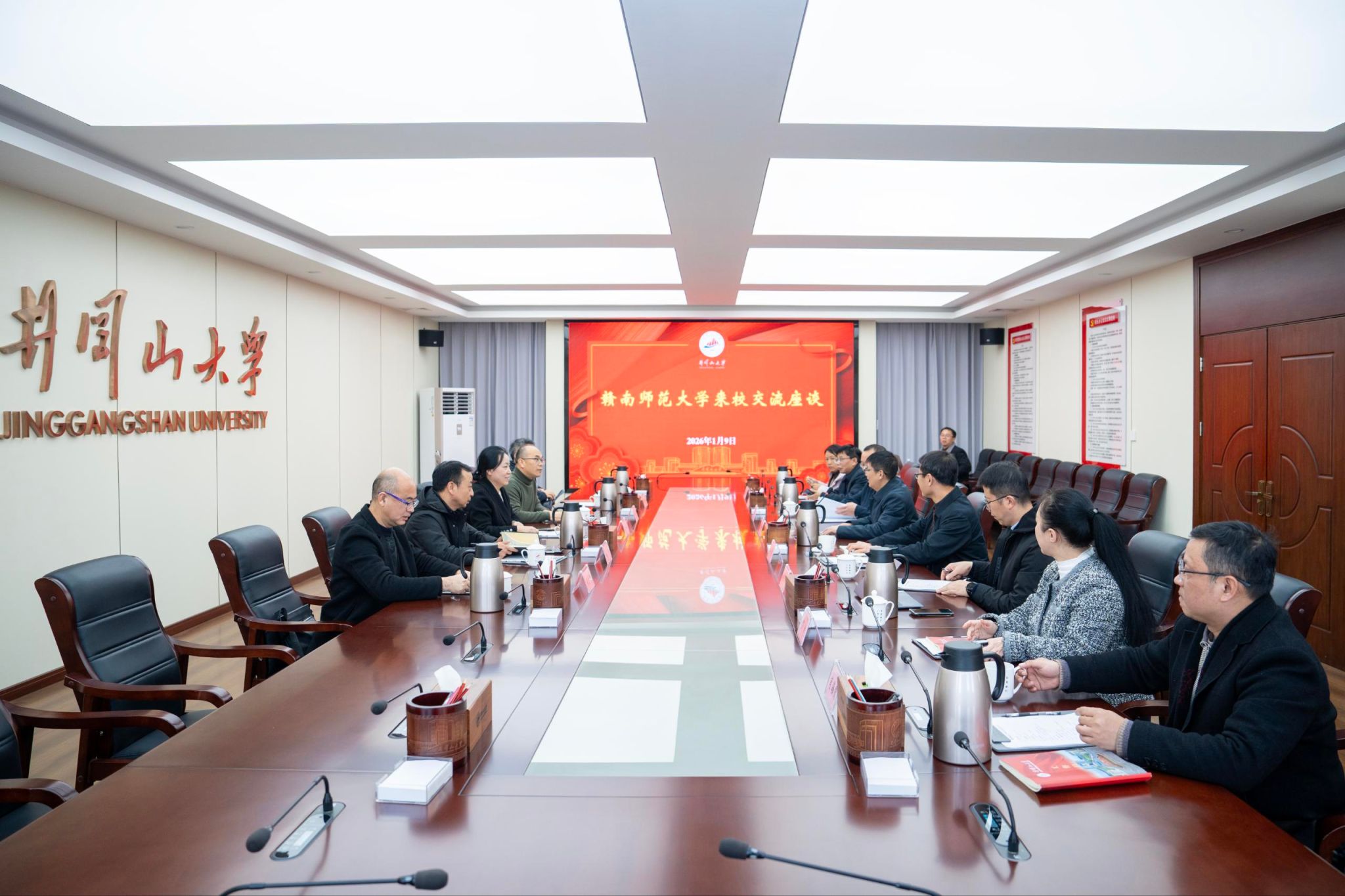 1月9日下午,赣南师范大学党委常委、副校长郭莉、罗世华一行六人来校调研交流,在行政楼二号会议室召开座谈会。校党委书记罗旭彪出席并致辞,党委常委、副校长冷明、敖四江出席座谈会。两校相关职能部门负责同志参加座谈。
