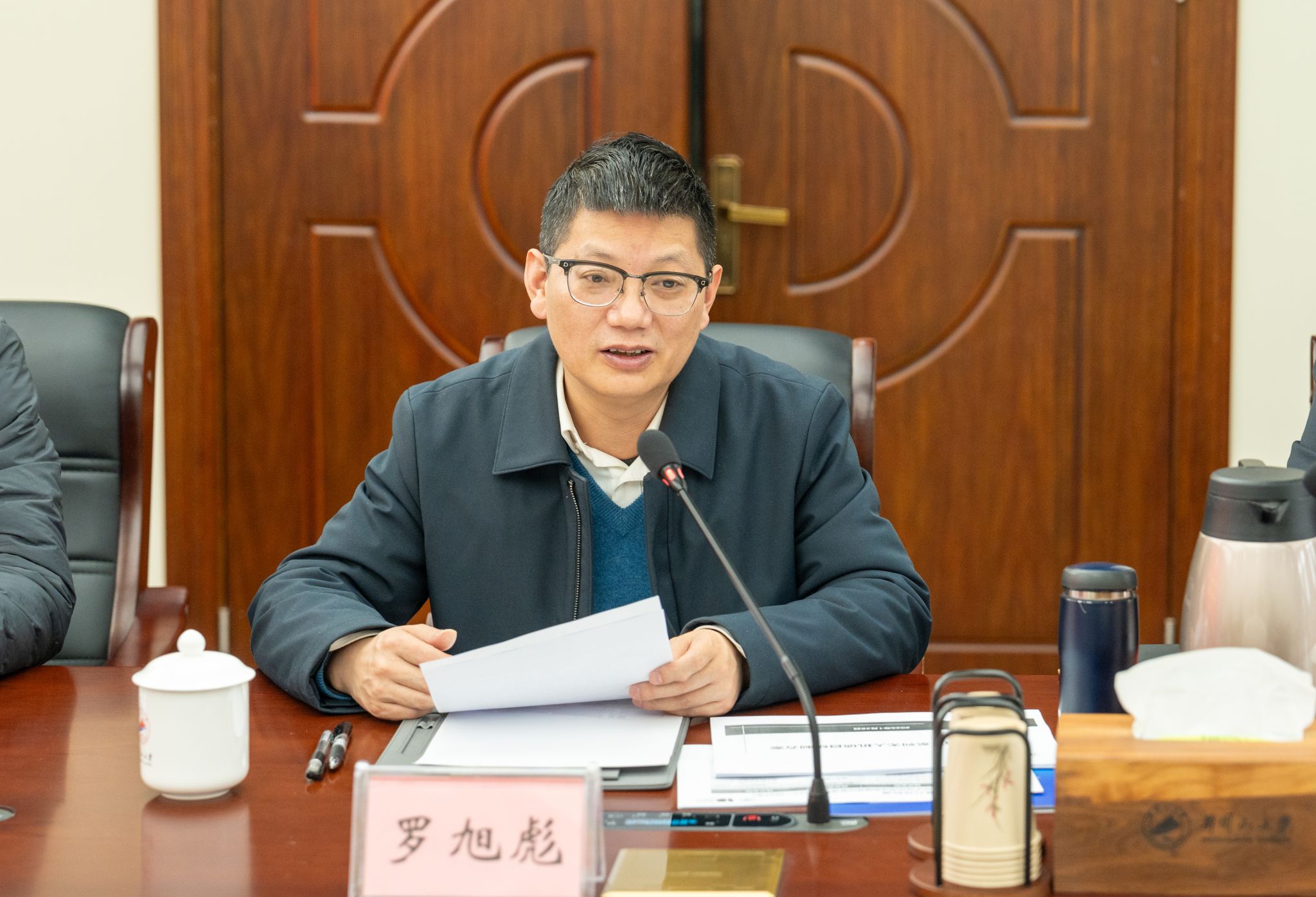 罗旭彪热忱欢迎企业来校交流与合作,并简要介绍了学校近年来发展所取得的可喜成就。同时也表达了学校对此次合作的高度重视以及对合作前景的积极展望,强调要高起点、高要求、高质量立足于全链条布局,将此次合作打造成两山场景应用的典型案例,促进高校与企业共赢发展。