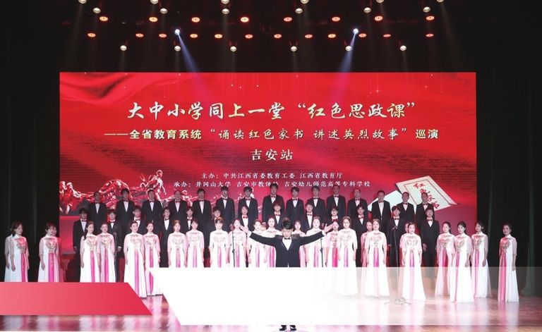 12月13日,由省委教育工委、省教育厅主办的大中小学同上一堂“红色思政课”——全省教育系统“诵读红色家书 讲述英烈故事”巡演在井冈山大学举行。 李 琴摄(12月19日11版)