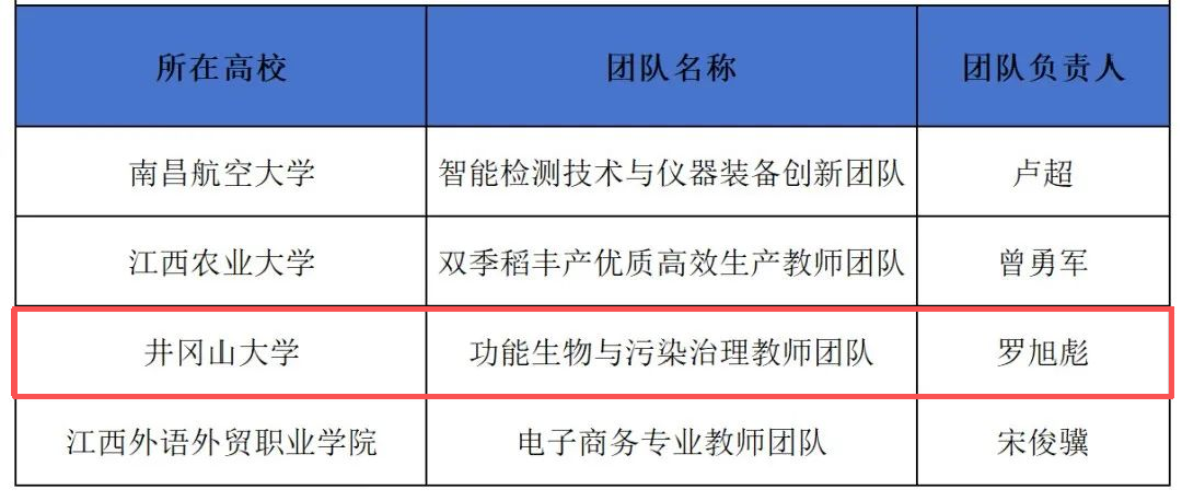 江西4个团队上榜