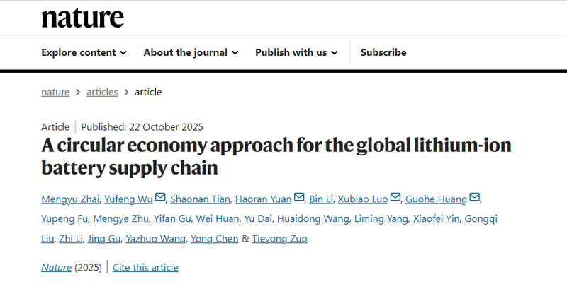 江西新闻客户端讯(张丹 李琴)近日,井冈山大学教授罗旭彪联合北京工业大学教授吴玉锋、中国科学院广州能源研究所教授袁浩然、北京师范大学教授黄国和等多家高校及科研单位合作,在顶级学术期刊Nature上发表研究成果。该研究提出了一种创新性的“锂循环可计算一般均衡模型”,将生命周期思维融入全球经济动态分析中,系统评估了锂离子电池供应链的 decarbonization 路径。