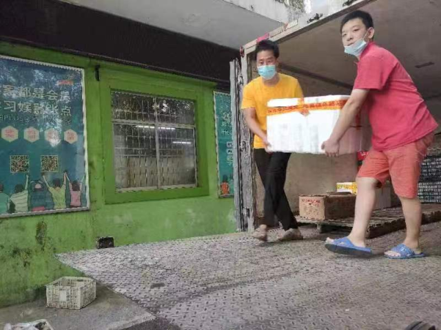 刘钟将和员工搬物资(左一为刘钟将)